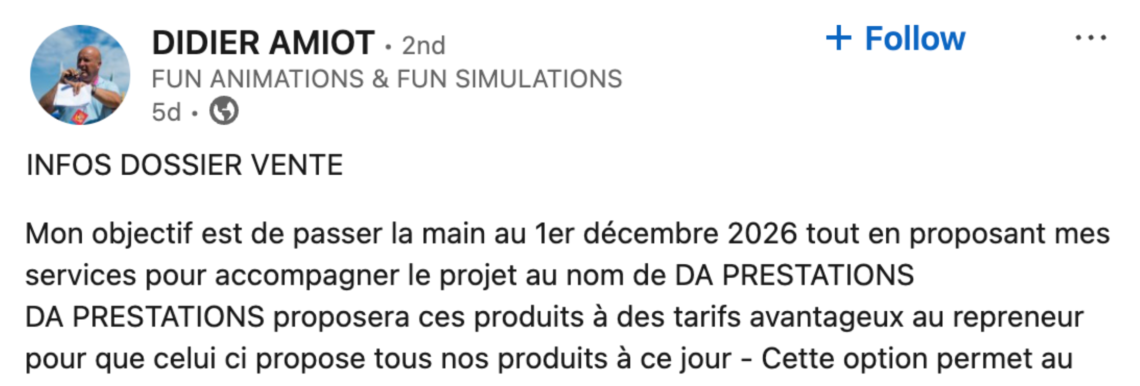 « Je voyais de bonnes offres de cession passer sur LinkedIn et je savais que j'en manquais la majorité. Disko Deals vient automatiser cela et en quelques minutes par semaine j'identifie des opportunités intéressantes ».